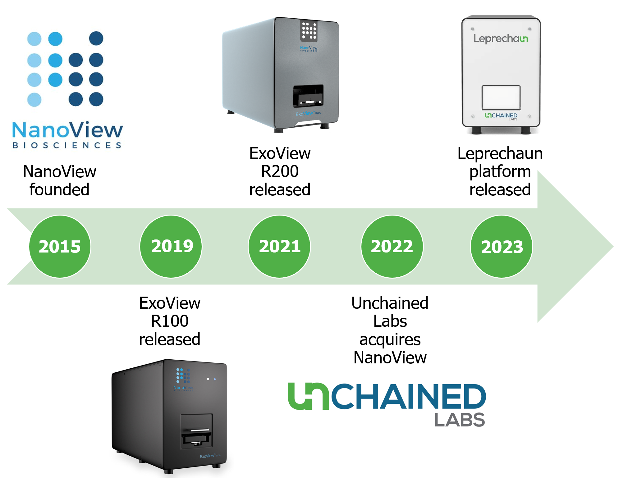 2022 年 5 月6日,Unchained Labs (Unchained)是一家致力于为生物制剂和基因治疗研究人员提供合适工具的生命科学公司,该公司当日宣布收购了外泌体公司NanoView Biosciences(NanoView)。NanoView 的 ExoView 技术在表征外泌体方面处于领先地位,他们最近推出的 LentiView 平台是研究慢病毒的基因治疗研究人员的游戏规则改变者。