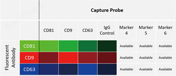 anti-CD81, anti-CD9, anti-CD63, 同型IgG对照;可自定义 |