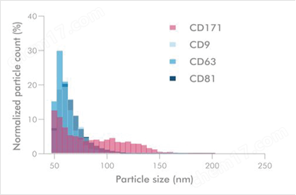 能够对>50 nm的外泌体进行全方面的表征,无论是粒径尺寸、粒径分布还是外泌体的亚型均可在一次测试中得到。并且所用来测试的样本无需进行纯化,避免因纯化带来的样本偏差。